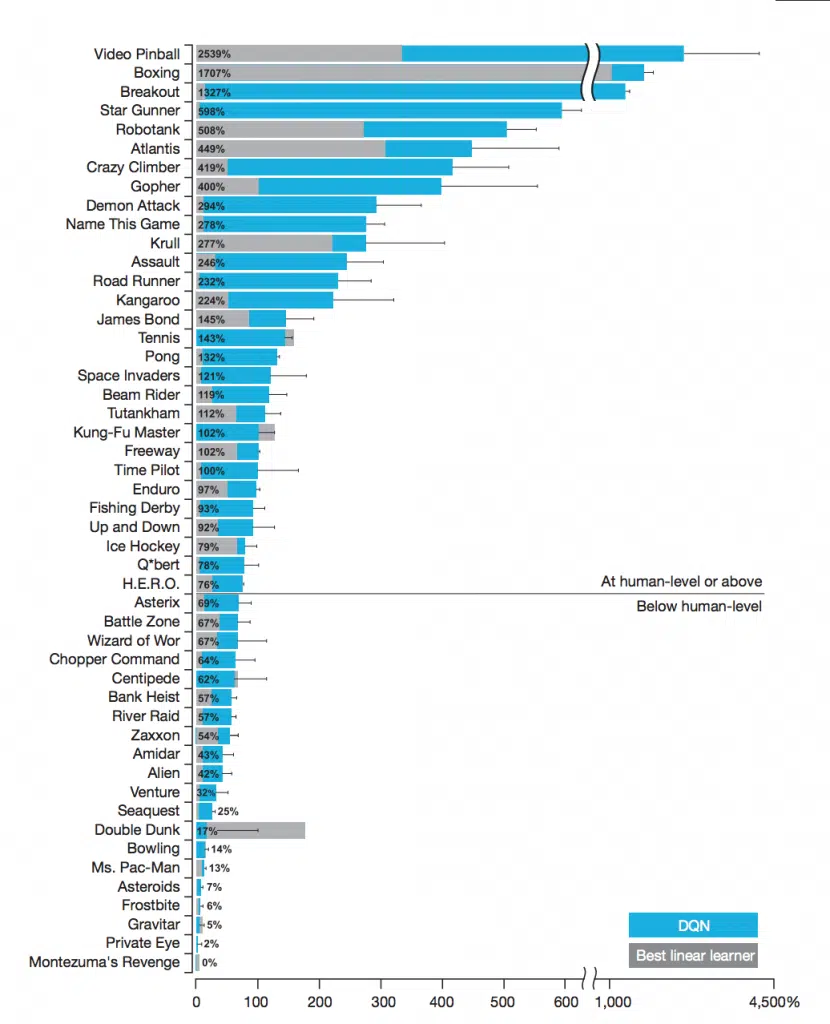 Een lijst met spellen die door machines worden gespeeld. In de meeste spellen traint Deep Learning netwerken goed genoeg om beter te spelen dan een menselijke speler.
