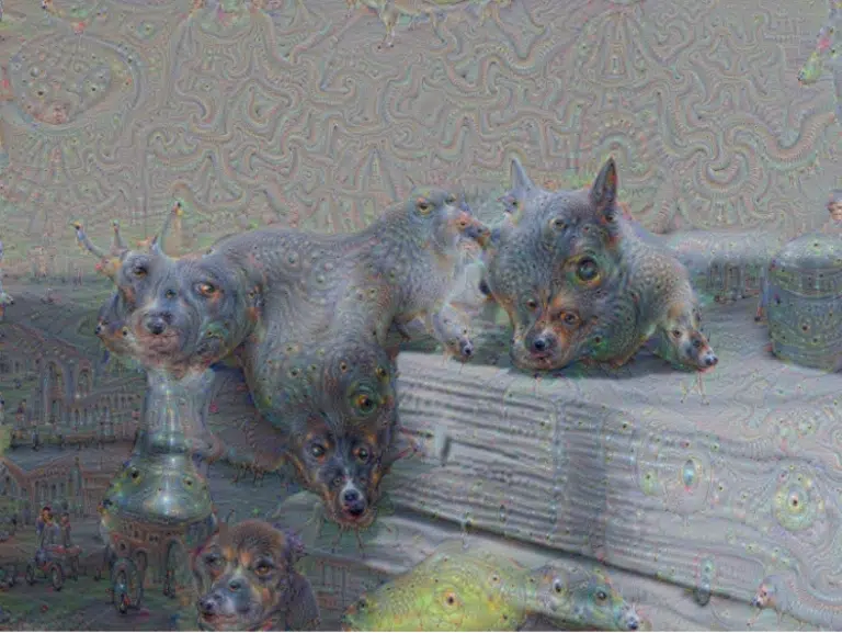 Dit volgende voorbeeld gaat je hersens verwarren, dus mijn excuses op voorhand. Eind 2015 vonden Google-onderzoekers een manier om Deep Learning te gebruiken om de computer functies in afbeeldingen te laten verbeteren. Deze techniek kan op verschillende manieren worden gebruikt, waaronder Deep Dreaming, waarmee de computer bovenop een bestaande foto kan hallucineren. De wetenschappers noemden het Deep Dreaming omdat de gegenereerde foto’s vaak op dromen lijken.
