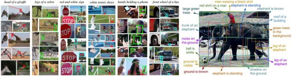 Een Deep Learning netwerk segmenteert automatisch een afbeelding en schrijft een korte zin die elk segment beschrijft met een goede Engelse grammatica.