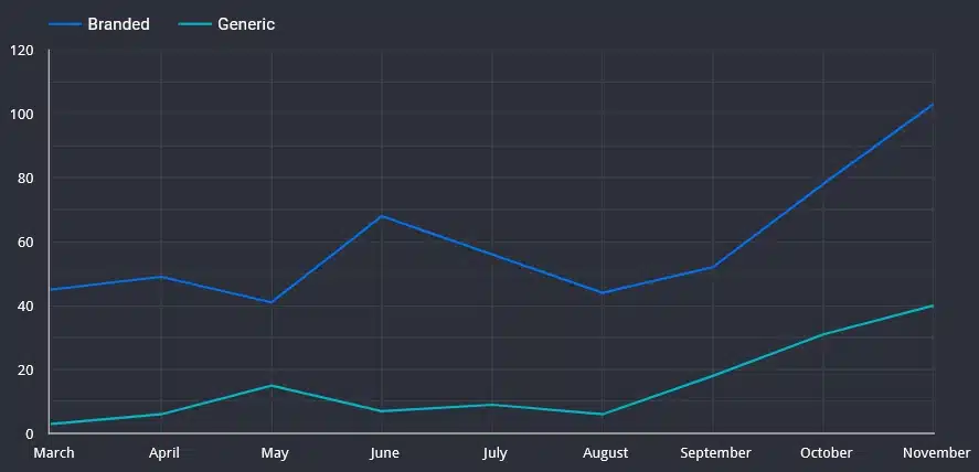 Tip 1: De brand lift meet ik zelf altijd via een Looker Studio Dashboard op basis van Google Search Console (GSC) data. In GSC kan je namelijk precies zien hoeveel kliks er op je merk zijn in de zoekresultaten van Google.