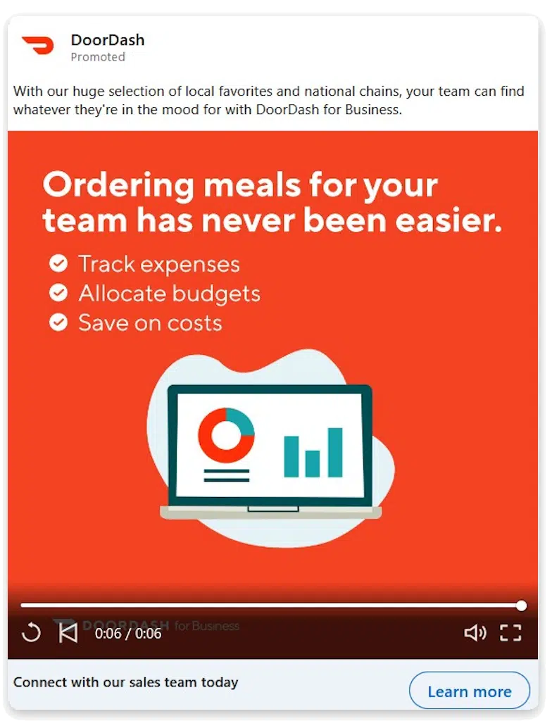 Een checklist advertentie is een algemene advertentie die het ook goed kan doen. Hierbij geef je voordelen en features aan van jouw SaaS in een lijstje, waarbij de bullets vinkjes zijn. Het voorbeeld van DoorDash hierboven geeft dit mooi weer.