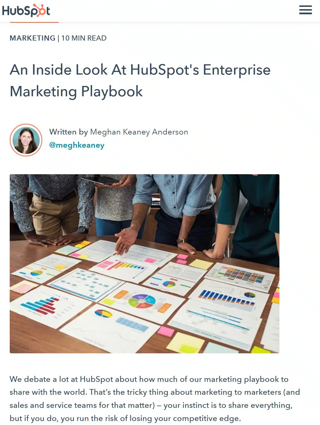 Je ziet hier de Medium-versie van een Hubspot-artikel over enterprise marketing: