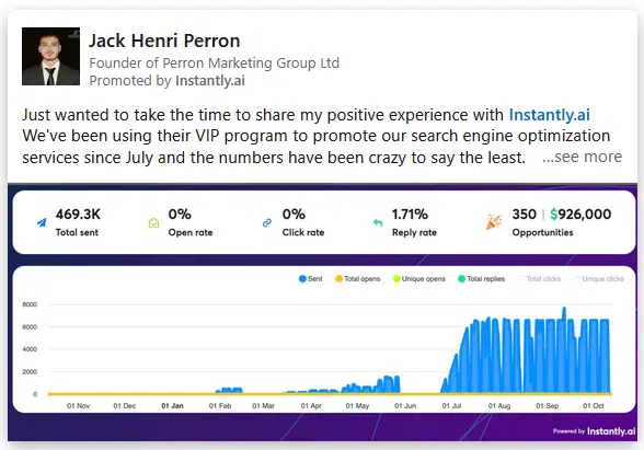 Hier is een voorbeeld van een afbeelding van een LinkedIn Thought Leadership Ad van Instantly: